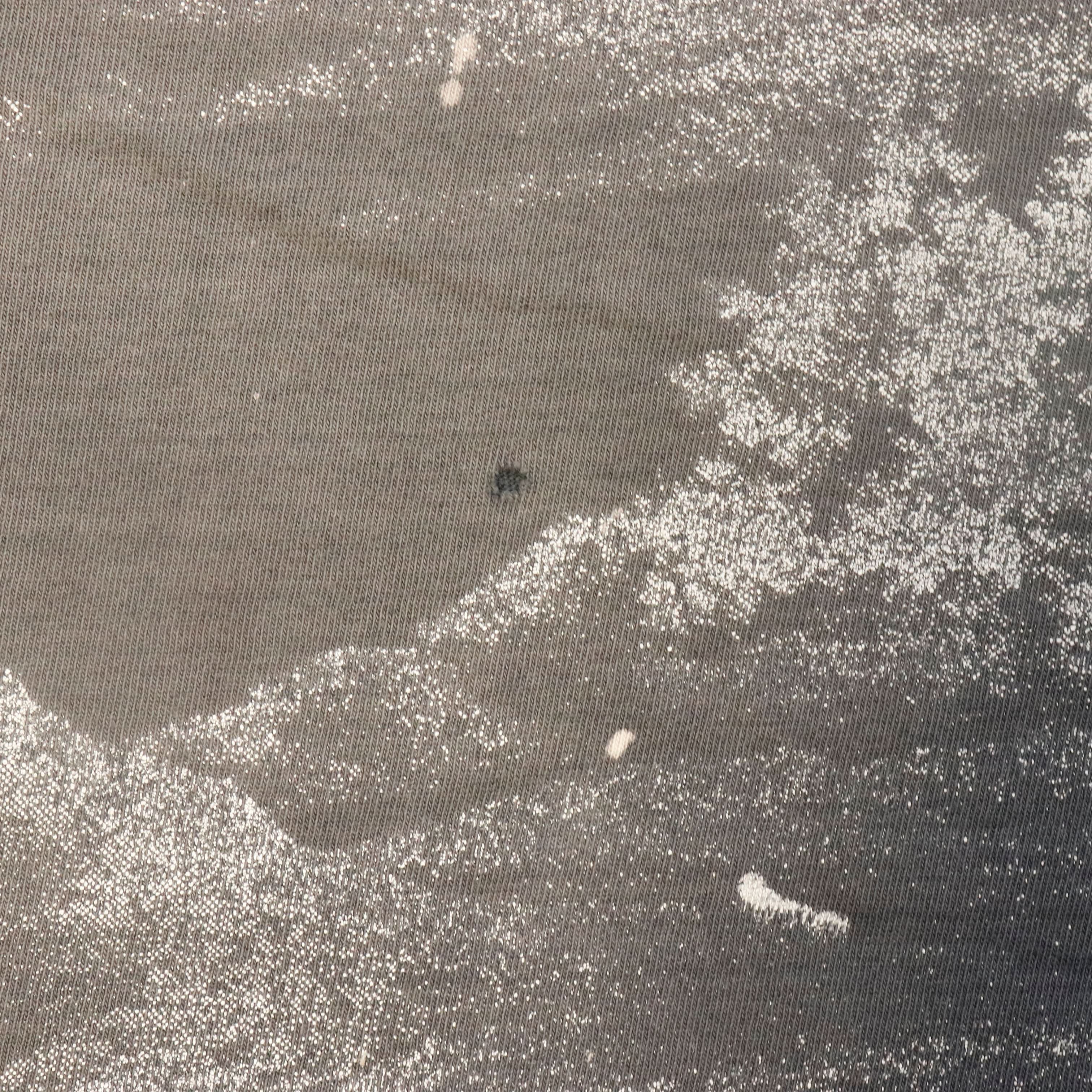 Shows noticeable wear throughout including small holes, a larger tear at the right side seam, and light staining/spotting; see photos.