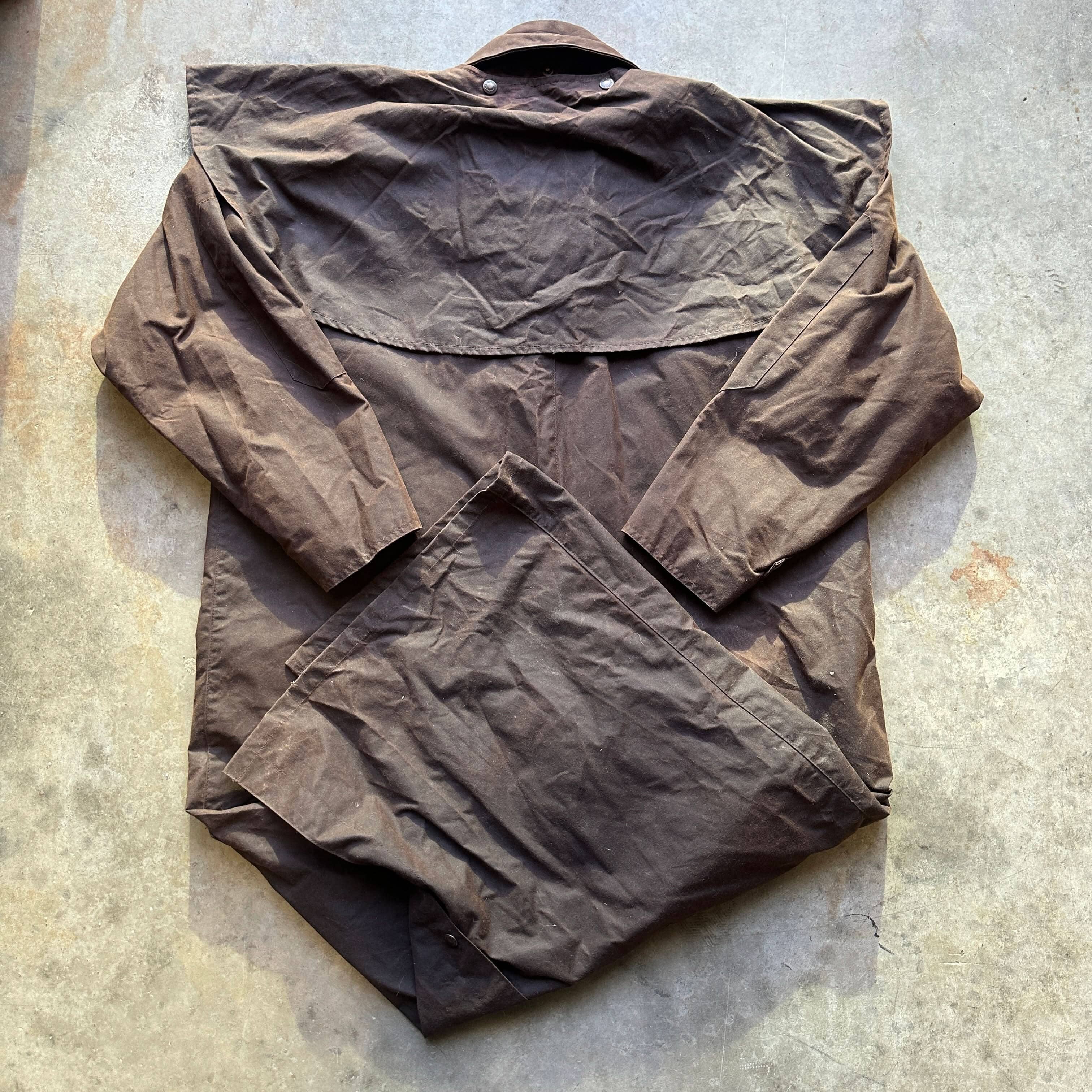 Vintage The Australian Outback Collection Brown Oilskin Duster Coat Size L